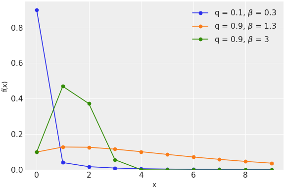 \[f(x \mid q, \beta) = q^{x^{\beta}} - q^{(x + 1)^{\beta}}\](